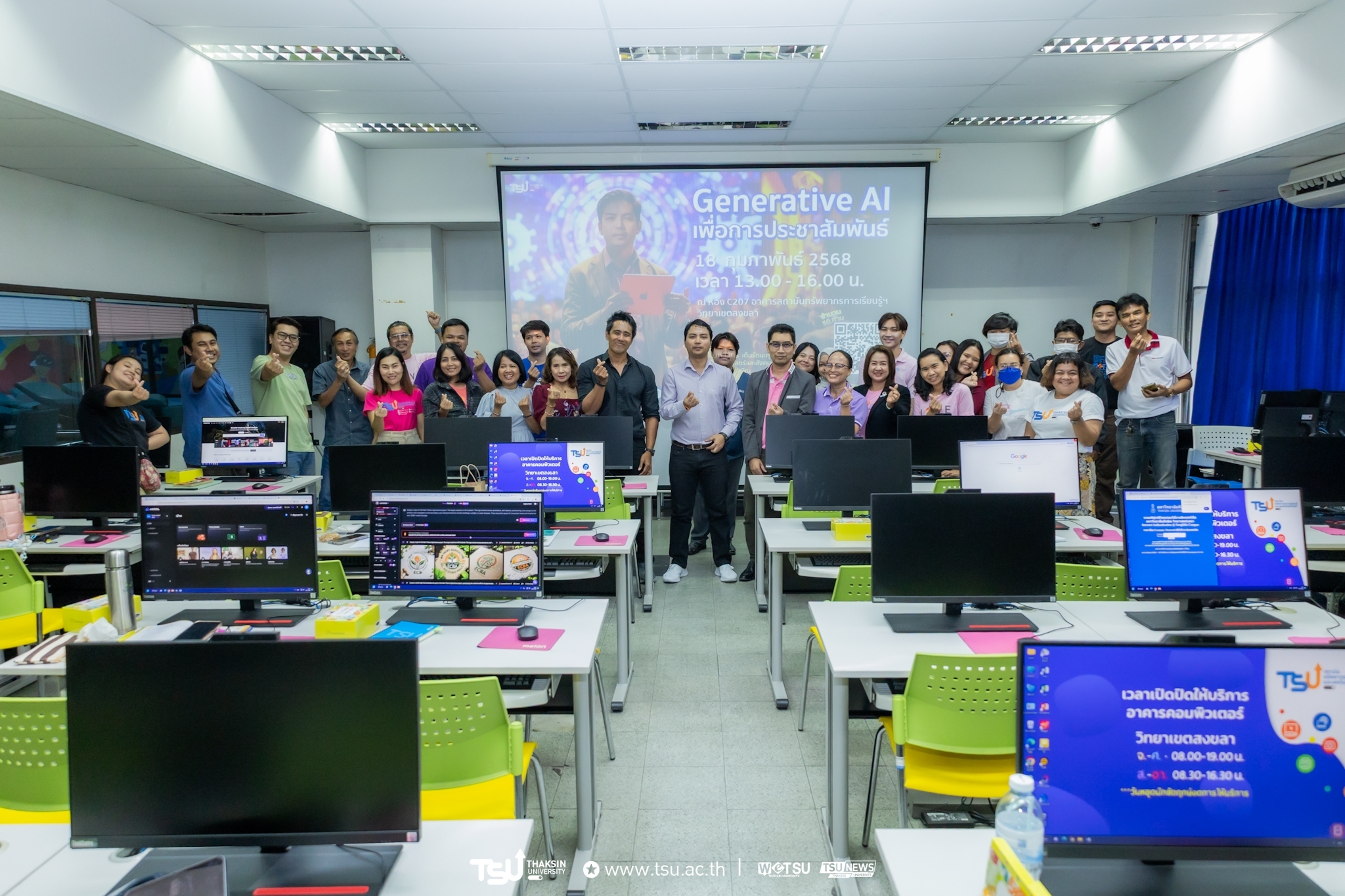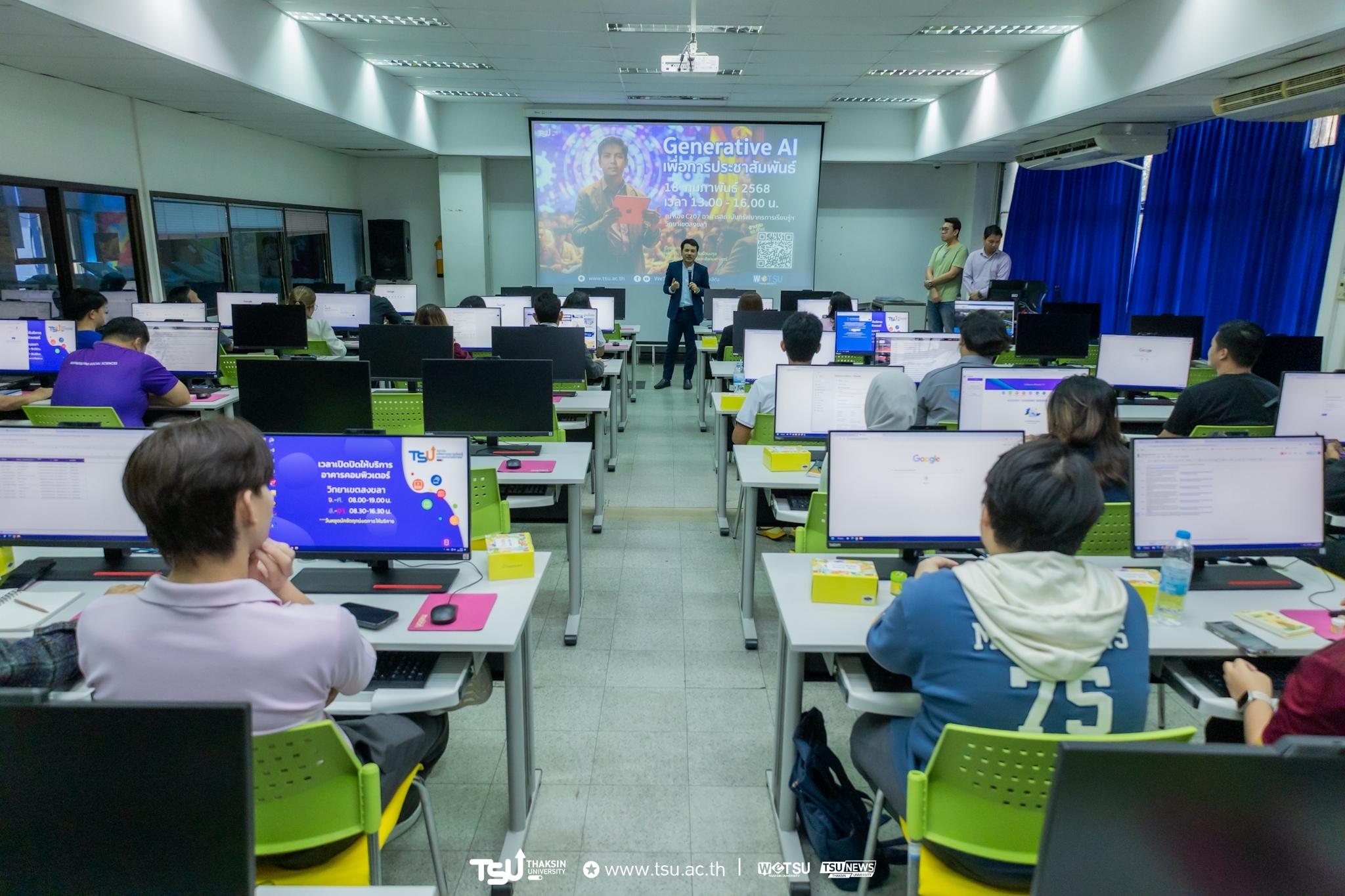 งานสื่อสารองค์กร สำนักงานมหาวิทยาลัยทักษิณ จัดโครงการพัฒนานักสื่อสารองค์กร หลักสูตร การสร้างคอนเท้นต์ Generative AI เพื่อการประชาสัมพันธ์ เมื่อวันอังคารที่ 18 กุมภาพันธ์ 2568 เวลา 13.00 – 16.00 น. ห้อง C207 สถาบันทรัพยากรการเรียนรู้และเทคโนโลยีดิจิทัล มหาวิทยาลัยทักษิณ วิทยาเขตสงขลา  สำหรับการอบรมในครั้งนี้มีวัตถุประสงค์เพื่อพัฒนาบุคลากร ด้านงานสื่อสาร องค์กรของมหาวิทยาลัยให้มีศักยภาพและเพื่อเพิ่มขีดความสามารถในการใช้เครื่องมือเพื่อการประชาสัมพันธ์เพิ่มมากขึ้นโดยสอดรับกับการเปลี่ยนแปลงที่เกิดขึ้นอย่างรวดเร็วกับเทคโนโลยีด้านการประชาสัมพันธ์ในโลกปัจจุบัน
